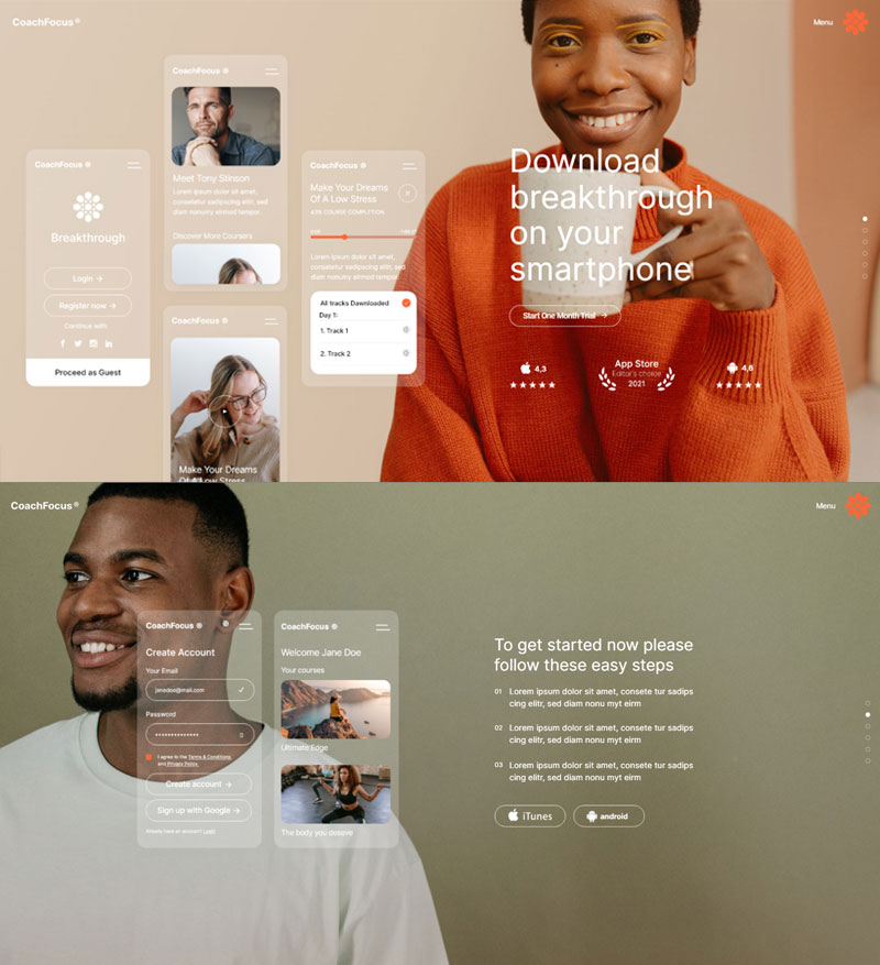 A selection of modern websites dedicated to modern coaching & online courses